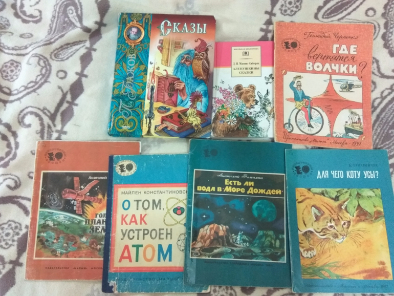 Это библиотечное. Две книжки - по программе, остальное - сокровища, откопанные в каком-то закоулке библиотеки. У некоторых книг мы первый читатель в этом тысячелетии :)