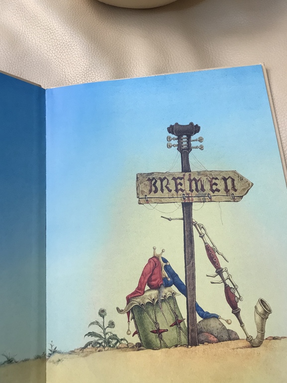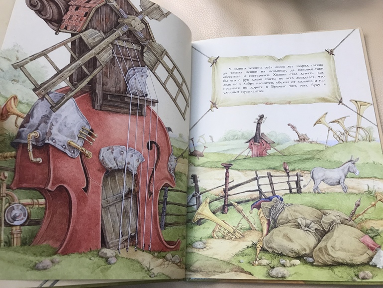 Где привычный нам дом -это дом в виде скрипки, на деревьях растут различные дудки и даже из земли , помимо травы и прочего, выглядывают всякие музыкальные инструменты.