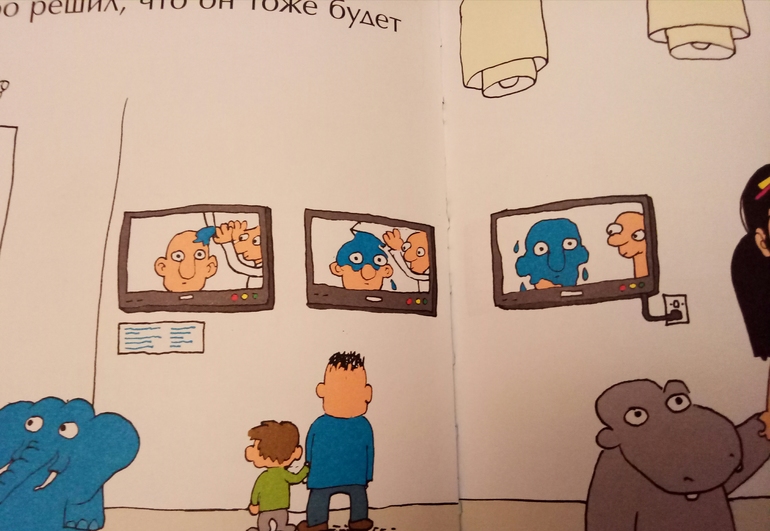 Мимбо Джимбо не проходит любовь, купила еще про то, как Мимбо Джимбо и его друг Мумбо Джумбо едут в гости, там и машины, и каштаны, естественно, делали Чудище Чудовище) но вот этот разворот я не поняла, к чему он тут..