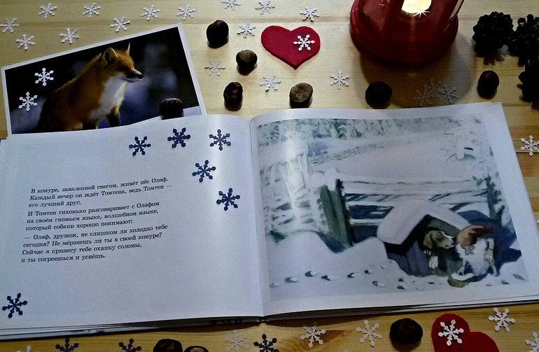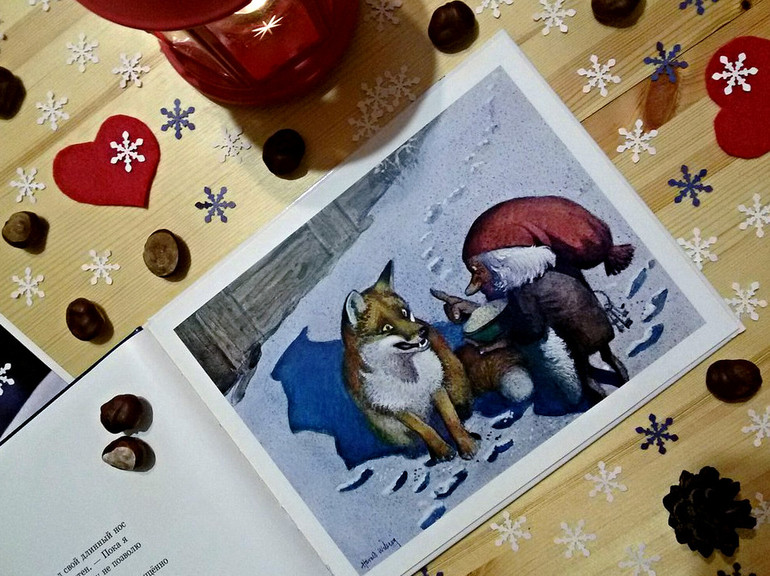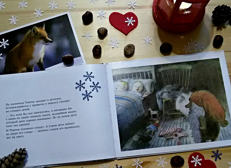 Эти книги мы достали около месяца назад. Именно они открыли наше зимнее чтение в этом году. Именно историями про Томтена мы завершали наши вечера на протяжении многих дней. В них мало действия и мало слов, но эти слова убаюкивают, а нежные иллюстрации успокаивают уставшие за день детские глаза. Эти книги пропитаны неповторимой атмосферой добра и спокойствия. Атмосферой деревенского уюта, когда в очаге разведен огонь, а под окном лежит ровный пушистый снег, на котором так отчетливо видна цепочка следов маленьких ног Томтена.