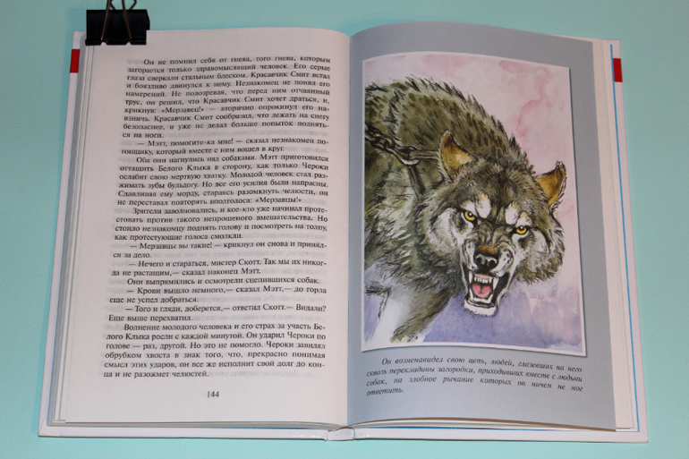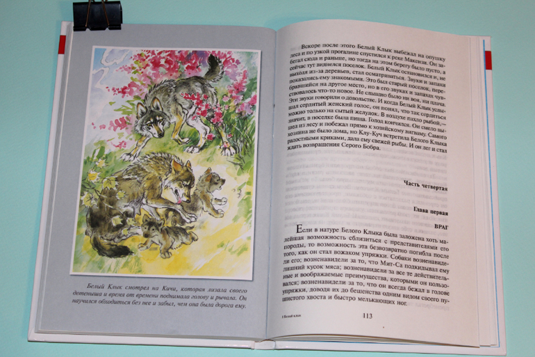 Ох уж этот "Белый клык". Была у нас книга от "Самовара". Нормальное издание с хорошими иллюстрациями. Сыну на лето читать задали. Мучил он целую неделю несколько страниц, скучно, говорил, не интересно.. А потом вообще заявил, что будет читать только в издании от Махаона. Что их вариант книги ему очень нравится и иллюстрации там лучше. Ну что ж, нашла в Читай городе, заказала, еще и 250р за доставку платить пришлось, но "чем бы дитя не тешилось, лишь бы читало", как говорится)). За книгу поблагодарил, прочитал, но все равно восторга она в нем не вызвала(.