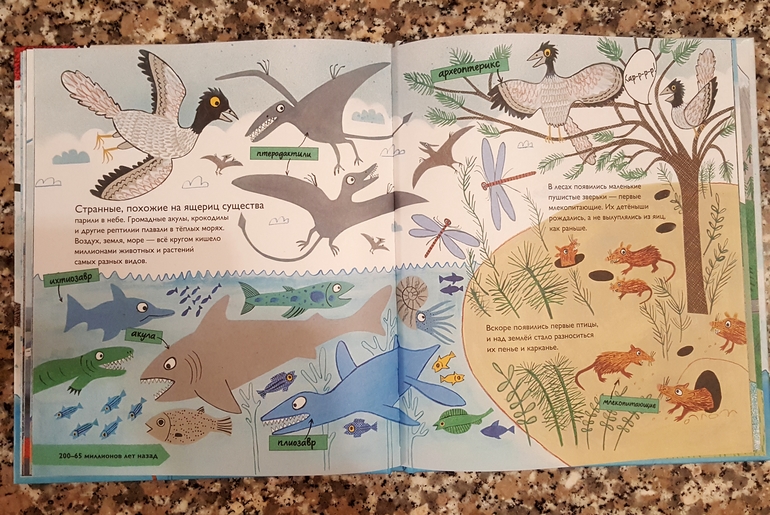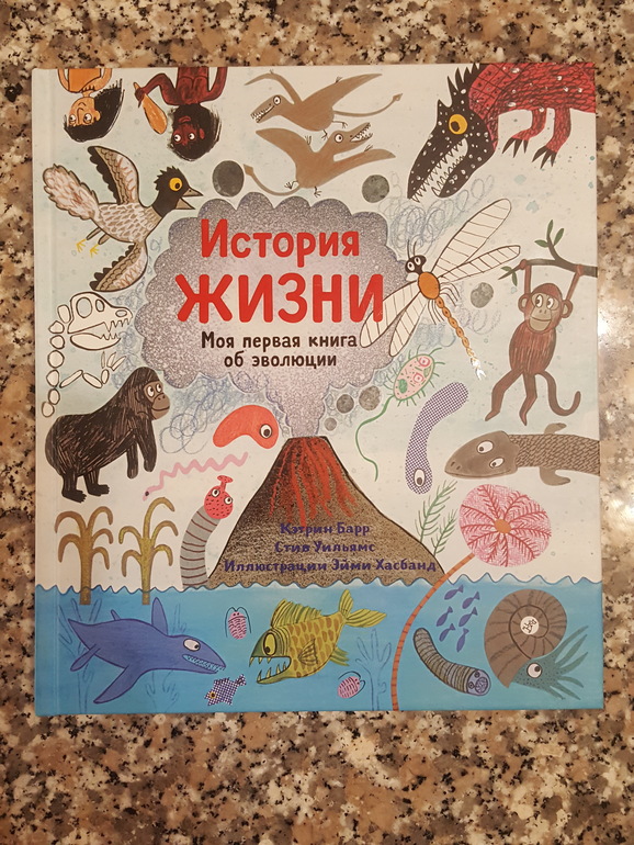 И еще заказала вот такую книгу об истории жизни на земле "Моя первая книга об эволюции". Иллюстрации не претендуют на реалистичность, но очень хорошо воспринимаются ребенком. Кстати, сейчас на майшопе на многие книги Самоката скидка 12%.