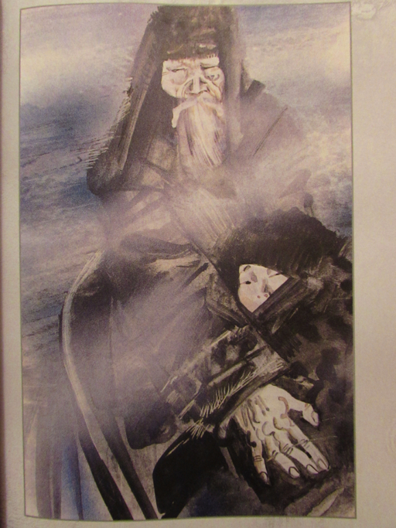 Мальчик, не в силах вынести убийства Рогатой матери-оленихи, бросается в реку (он болен, бредит и воображает, что превратился в рыбу) и погибает.