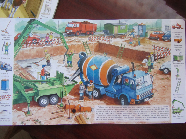 Книжка про стройку также очень полюбилась сыну. Действительно в книге очень много всякой техники - это должно быть интересно любому мальчику )) В этой книге опять как и в Путешествие на автомобиле рассказывается про тех же брата и сестру и художник соответственно тот же, в отличие от На ферме - там уже другой иллюстратор как и у других книг про животных из этой серии.