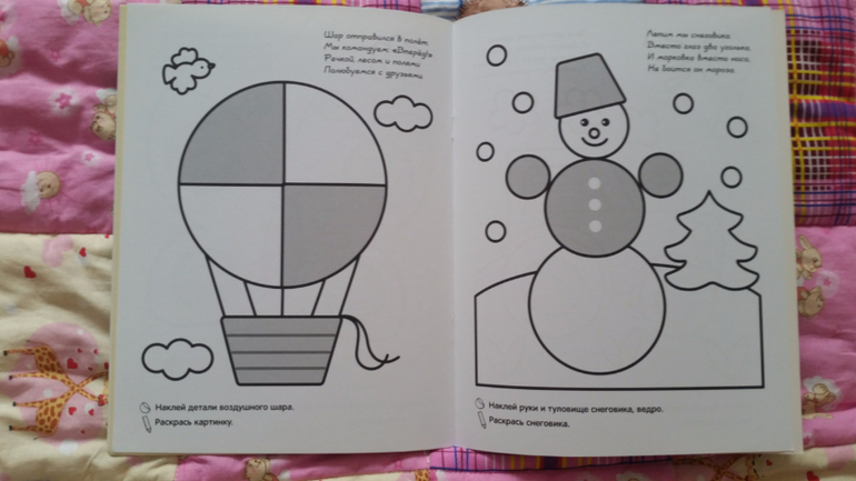 Отличное пособие, рекомендую. Задания разные: раскрасить, наклеить вату и т.д.