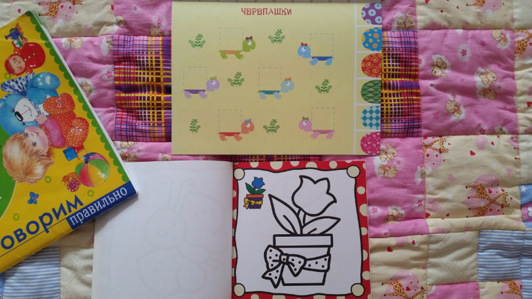 Отличные раскраски. Бумага плотная, можно и красками раскрашивать при желании. Задания от простого к сложному. Однако, мы начали раскрашивать их совсем недавно (сейчас дочери 2,10), раньше предлагала, она не хотела. Может быть, после кумонов ей было непривычно и сложно такую большую поверхность закрашивать…