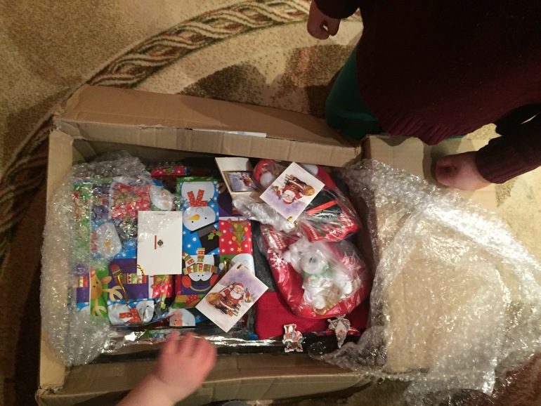 Целая коробища подарков вызвала дикий восторг детей, на протяжении распаковки было слышно "ух ах ох а ооо