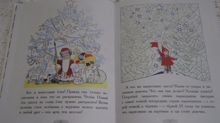 Очень рекомендую познакомить детей с такой новогодней сказкой. Подойдет детям от 4 до 8 лет. Хорошо бы найти электронный вариант и распечатать,а то рисовать в книге как-то не удобно, особенно втроем...