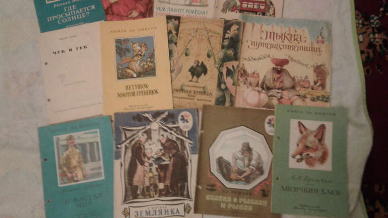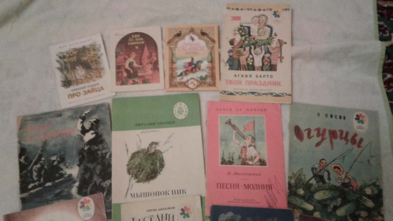 3. Как я сокрушалась о потери своих детских тоненьких книг. И вот однажды поехали мы с мужем к его родителям, а там на антресоли обнаружились его и его брата тоненькие книги, конечно совсем другие, не мои, но очень увлекательно было увидеть его детство через эти книги. И вот так у нас на полочки они поселились.
