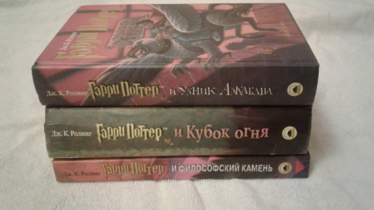 1. Первые книги, о которых мне вспомнилось. Это книги Гарри Потерра Росмэн. Честно перевод Спивак не читала, с пеной у рта не спорю, какой перевод лучше. Просто привычен мне перевод Росмэн издания. Заказала первую книгу по интернету, пришла, не приятно меня удивила газетная бумага, обманули с ценой, на порядок выше получилась. Но книгу прочитала залпом и осталась довольна, как слон. Есть в нашем городе букинистический магазин, наведываюсь туда редко, в основном там книги не очень хорошего качества, со страшненькими иллюстрациями. И вот однажды случай привел меня туда, так оказались еще две книге из серии Гарри Потер. Пока только три книги из серии: