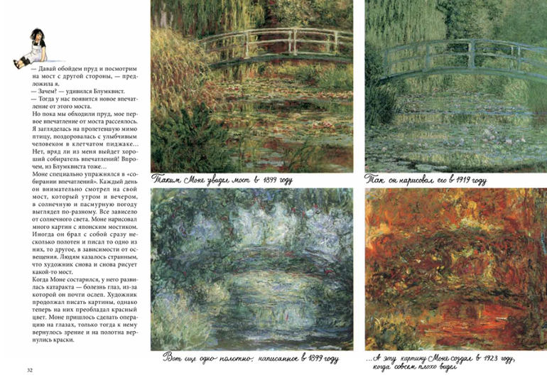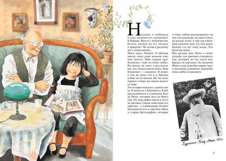 Линнея - маленькая девочка, которая очень любит цветы. Вместе со своим другом, садовником Блумквистом, она совершает путешествие в Париж, на родину великого художника Клода Моне. Им удается не только побывать в музее, где хранятся его картины, но и заглянуть в дом художника, посмотреть на цветы в его саду и пройтись по знаменитому японскому мостику, который Моне так часто изображал на своих полотнах. А самое интересное о жизни Моне они узнают от его правнука, который повстречался им рядом с домом Моне.
