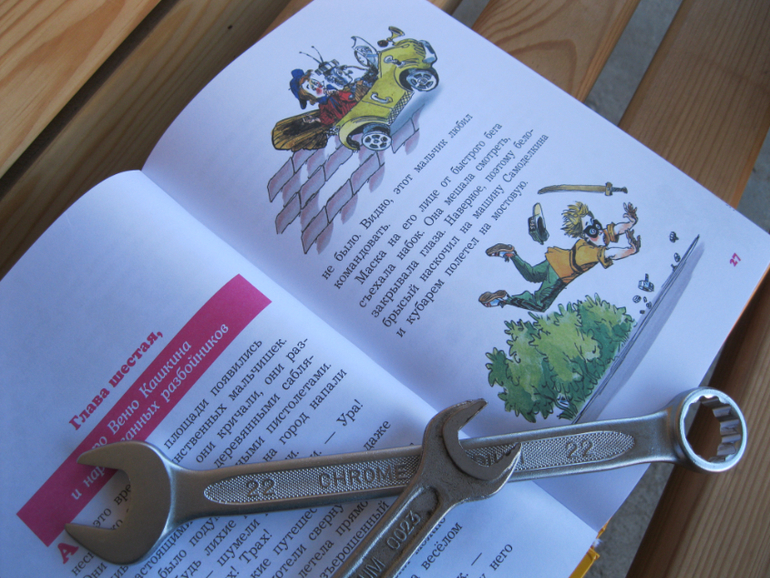 И вот она, наша летняя героиня, книга (купленная, кстати, на сертификат ДК; спасибо девочки Катерина Ника1313 , всё никак она в мой лимит не вписывалась), которая много вечеров подряд развлекала, радовала, веселила. Книга очень серьезного для Константина объема. Скажу честно, я не уверена, что Костя всё-всё-всё в ней понял, но героев ее полюбил, особенно маленького Прутика.