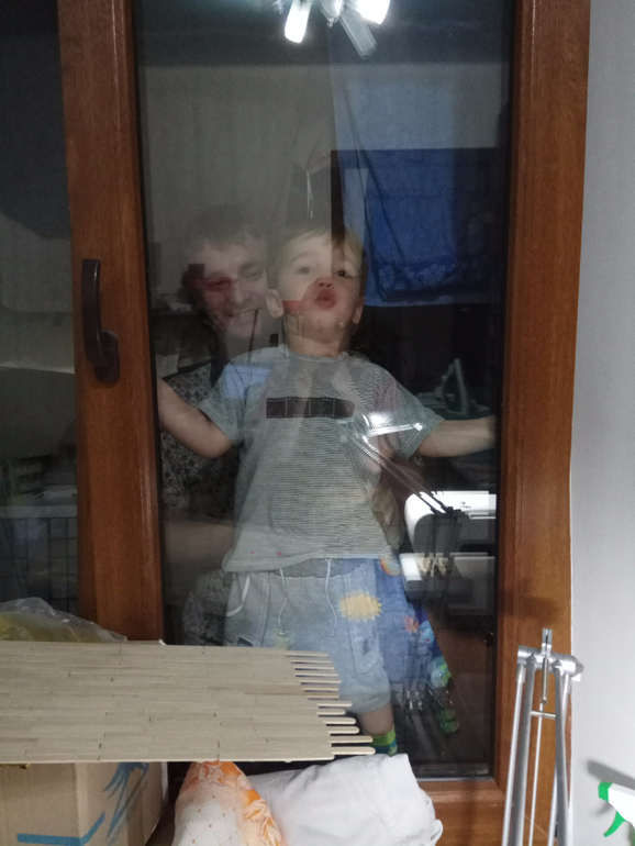 Так выглядела слингополка без чехла (верхняя палка составлена из двух кусочков, не обращайте внимания, мы ее потом скрепили)