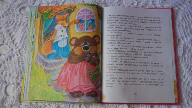 А здесь мама-медведица впервые привела сыночка в детский сад. Ах....Я помню эти чувства...