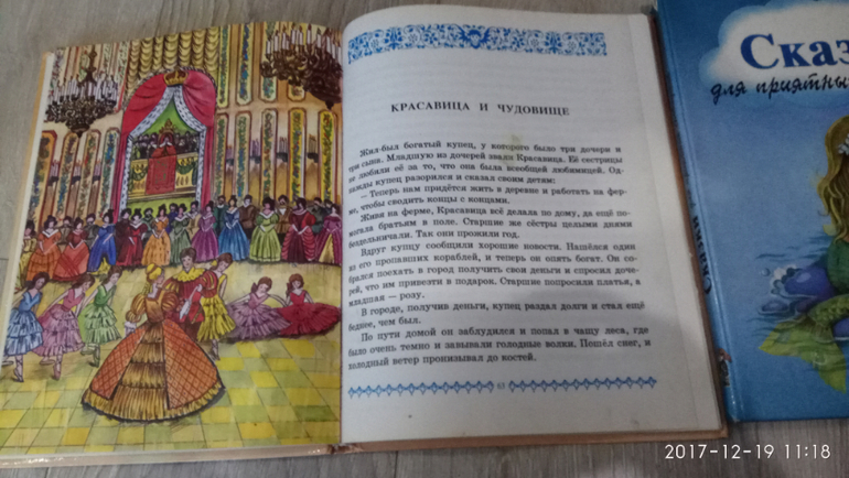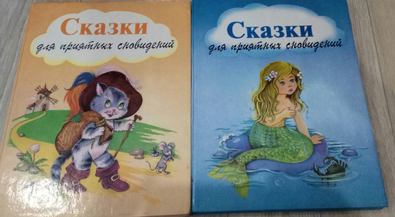 1.Сказки для приятных снов.Издательство "Нугешинвест" 1993. В сборнике сказки разных стран Европы. Есть знакомые Три апельсина,Дюймовочка,Красавица и Чудовище. Иллюстрации очень красивые и яркие.