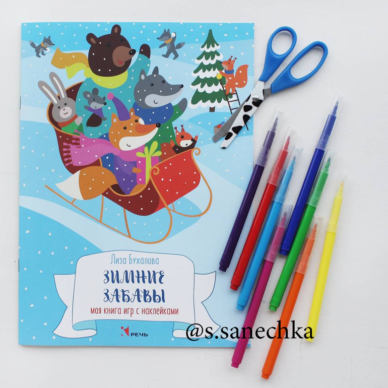 Давно искала какую-нибудь новогоднюю творческую книгу для старшего сына (на 5 лет). Чтобы занимался сам без моих объяснений и участия. И нашла просто замечательную у издательства Речь. Во первых порадовала цена, со скидкой вышла мне в 127 рублей на Лабиринте. Для такой отличной книги цена вполне вменяемая.