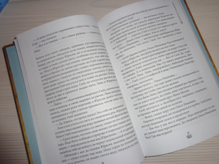 Получила книгу. Размер небольшой. Обложка "страшненькая" - если бы не была заинтригована кучей положительных отзывов, прошла бы мимо и не обернулась! Стояла она на полке, стояла...и тут решила я подержать ее в руках, посмотреть входные данные (люблю я такое), полистать книгу в поисках ну хоть маленькой зарисовки (как будто сотни читателей до меня могли их пропустить), почитать на "пробу" первый абзац...И всё! Понимаете - всё!!! Я пропала! Иногда говорят, что книгу буквально "проглотили", так в моем случае было именно так! Настолько легко и увлекательно читается, настолько интересно, что же будет на следующей странице! Я читала в любую свободную минутку! Откладывала книгу и мысленно постоянно возвращалась к ней, вспоминала прочитанное, предполагала будущее!