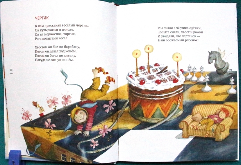 А если незнакомы - это самые веселые, самые детские, озорные, сумасшедшие, красочные стихи на нашей полочке теперь. Пишу «на нашей полочке», потому что нас ждет еще много открытий в мире стихов - у нас их не так много. А сейчас мы с сыном наслаждаемся неуемной фантазией Юнны. На первый взгляд, кажется, что она пишет просто набор слов в рифму - настолько эти стихи «перевернутые» (мне сложно подобрать слово). Кажется, что стихи «не о чем». Но это впечатление у нас прошло уже на второй половине первого стихотворения. Стихи просто детские))))