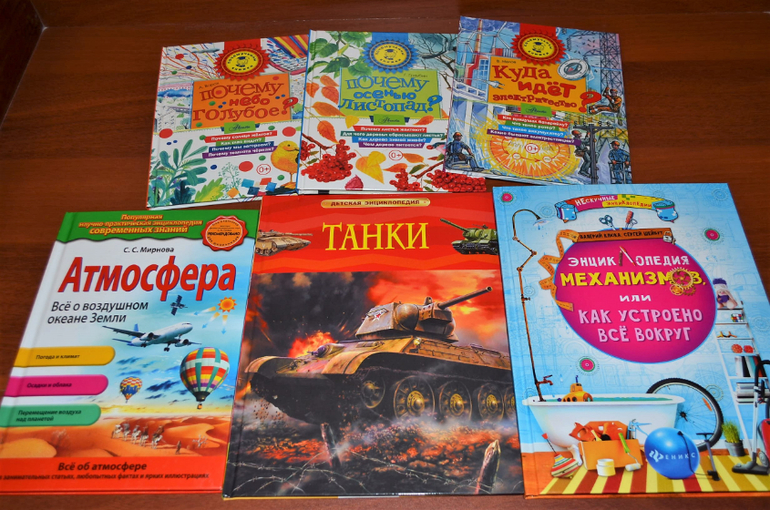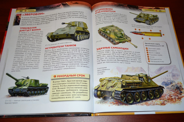 Танки уже листает старший - фанател от world of tanks. Восторг полный, увидел знакомые танки в книге, все слышу "Мам, смотри СУ-100, а ты знала...". Энциклопедию пока не показывала, но очень интересно об обычных предметах.