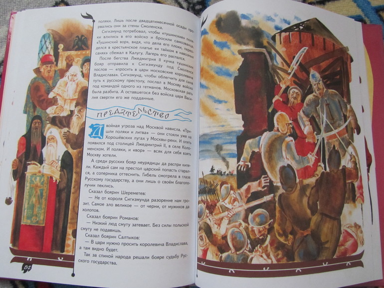 Я смутно, но помню, что в детстве точно читала книги с рисунками Перцова, уж очень они мне кажутся родными )) И вообще книга сделана как будто по советски что ли или это опять же мне иллюстрации навевают.. Содержание книги прям очень хорошее, я очень надеюсь, что мои дети потом её прочтут, я по крайней мере очень неровно дышу к подобной литературе )). Написано интересно, с большой любовью к родине, я думала сяду немного пролистаю и увлеклась, пока всю книгу не прочитала, доступный язык повествования без применения старых слов делает книгу доступной для средней школы. Многие моменты нашей истории были для меня известны поверхностно, рада, что теперь я много нового для себя узнала, особенно кого и от кого спасали Минин и Пожарский ( знаю, стыд мне и позор).