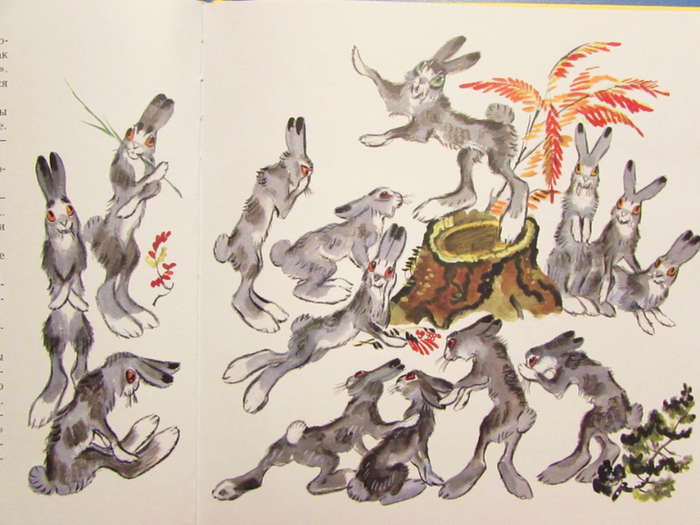 Первая сказка про зайцев, которые всего боятся. Любого шороха и шума.