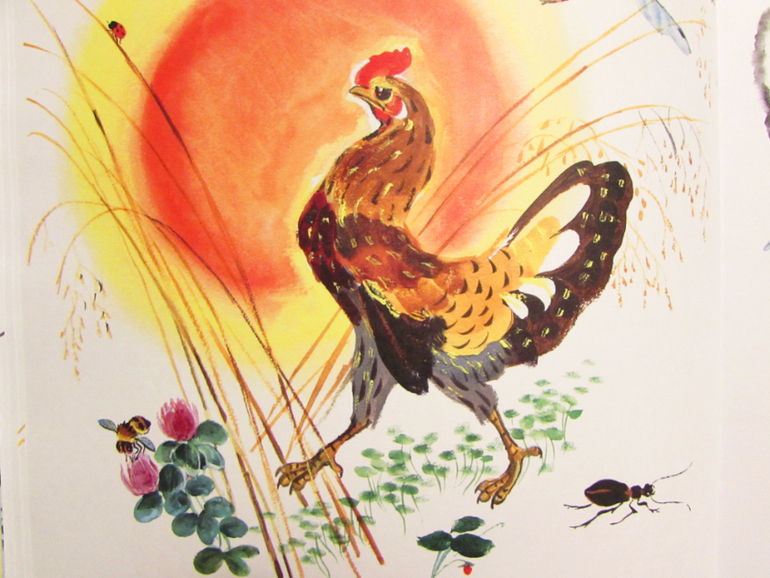 На их счастье сидевшие на берегу у болота лягушки увидав столько зайцев прыгнули в воду.