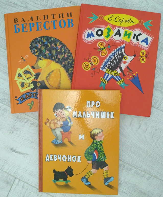 Первая группа - это стихи. Дочь где-то с 4-х лет перестала вообще слушать стихи, поэтому для нас чтение стихов стало можно сказать достижением. Первым у нас появился сборник Берестова, его стихи классические, они понятны, ритмичны, легко запоминаются. И мы начали их слушать, потом дочь стала сама их читать, и периодически наблюдаю её с этой книгой в руках.