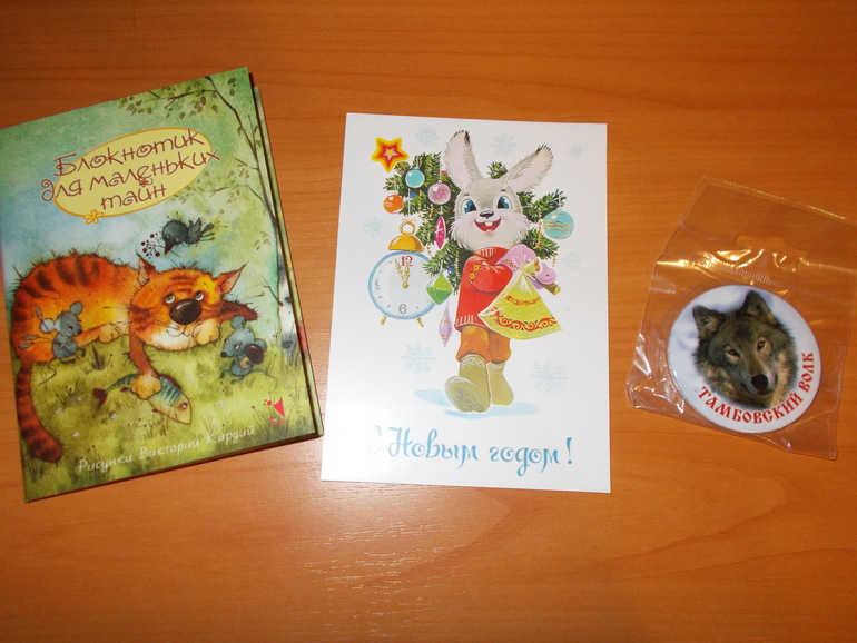 А ещё и чай, и чудесный блокнотик, и магнитик с Тамбовским волком))), и красивая замечательная открыточка с рисунокм как в детстве и очень теплыми, добрыми пожеланиями!
