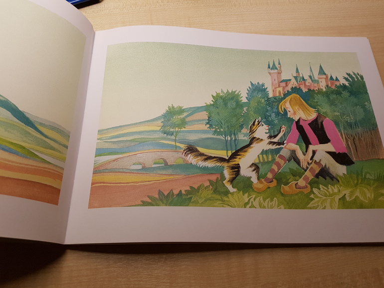 На 3м месте у нас Кот в сапогах, одна выигранная в ДК и одна от диапроектора. Скажу книги обе хороши и была у нас до них ещё книжка (не выдержавшая второго ребенка), но самая любимая у ребенка в иллюстрациях Михаила Бычкова, так же её постоянно смотрит на проекторе))) Причем в иллюстрациях Ники Гольц картинки более яркие, на каждом развороте.