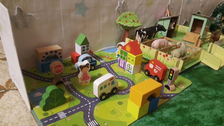 Город из кубиков Бондибон и ферма из картона Джеко.