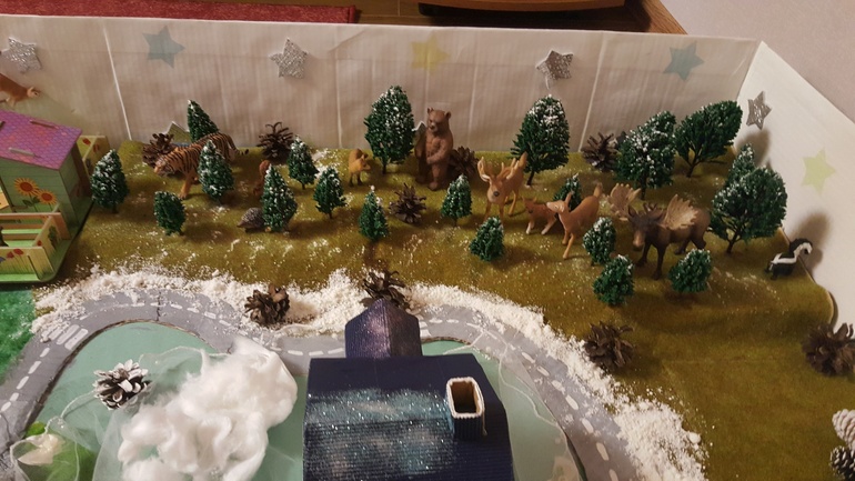 Домиков получилось пять, и за пять дней до Нового года возле одного из домиков появлялось новое животное Шляйх, что и стало главным сюрпризом.