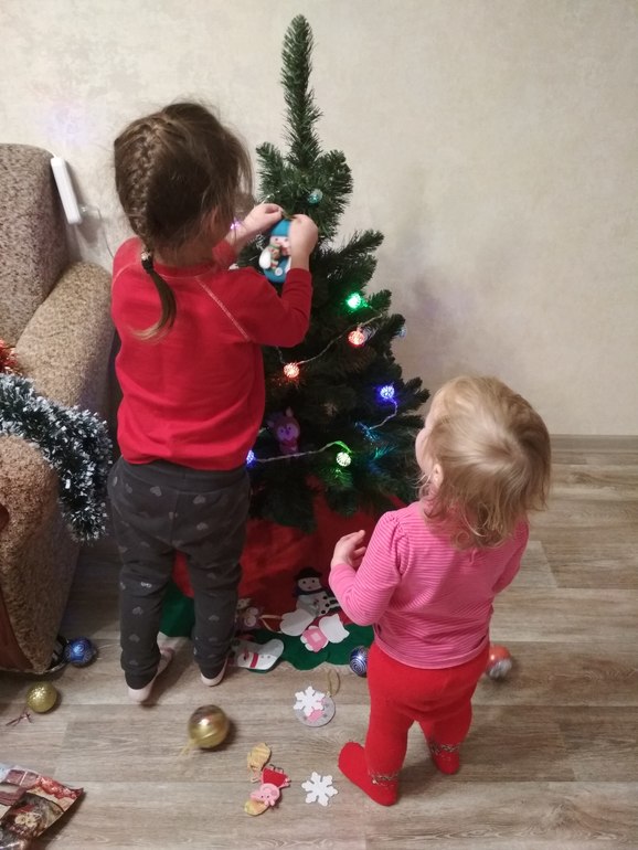 Снеговика искала долго, на ёлке были, и под ёлкой, на юбочке. Но там ничего... Наконец дошли до детской, а там в носке со снеговиком нас ждал дед мороз.