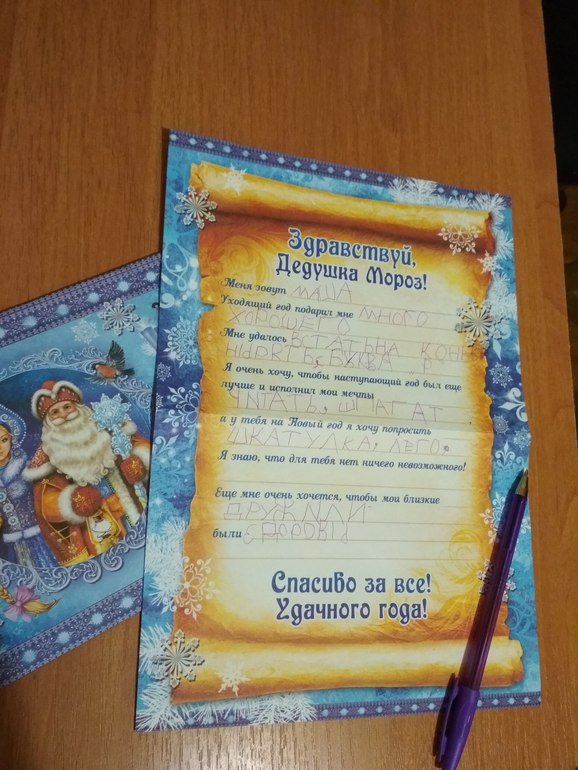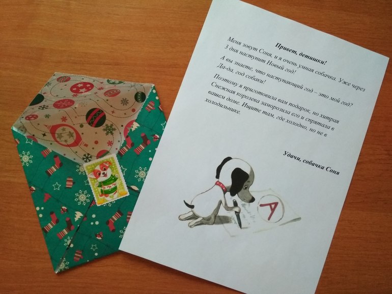Срочно сели писать письмо деду Морозу, конверт, как и сказано в письме, оставили в морозилке.
