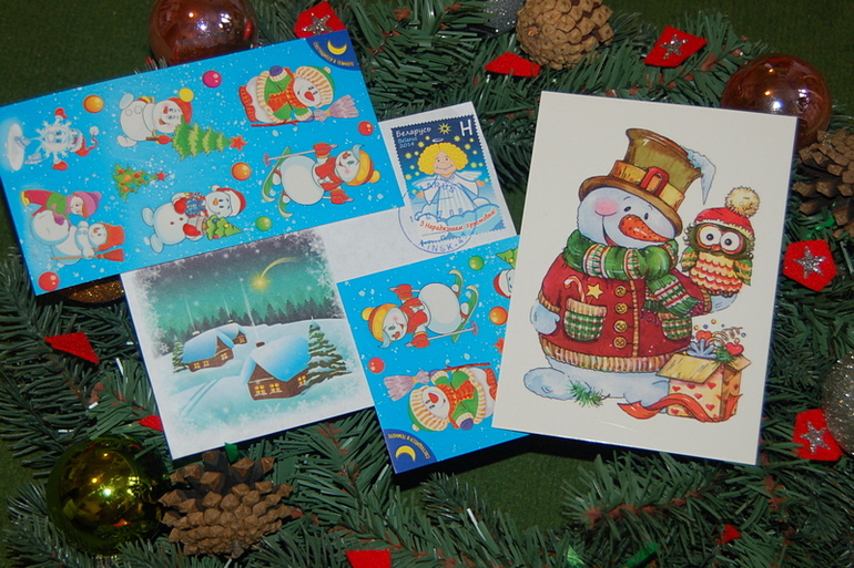 Танюша и Костик! Я так рада получить от вас весточку! Из конвертика как будто высыпались хлопушки и мандаринки и весело запрыгали по комнате!!! Спасибо тебе за необыкновенное поздравление! И за наклеек-снеговичков, теперь они у нас даже на вазочках с цветами и на мониторе ))) Не иначе, это хлопушки подействовали ))) И конвертик я с огромным удовольствием поразглядывала - самая что ни на есть рождественская белорусская деревушка и очень симпатичный ангелок! Спасибо, дорогая! 😘