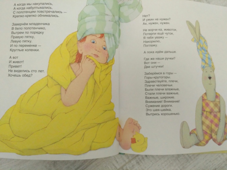 Купание, а вернее вытирание превращается в забавную игру, с упоминанием почти всех частей тела :