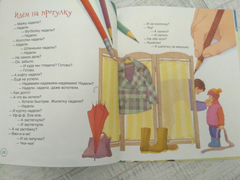 Так же очень нравится стихотворение о прогулке, это не только одевание но и целое приключение!! По ходу прочтения пальчики шагают, бегут, стучат :