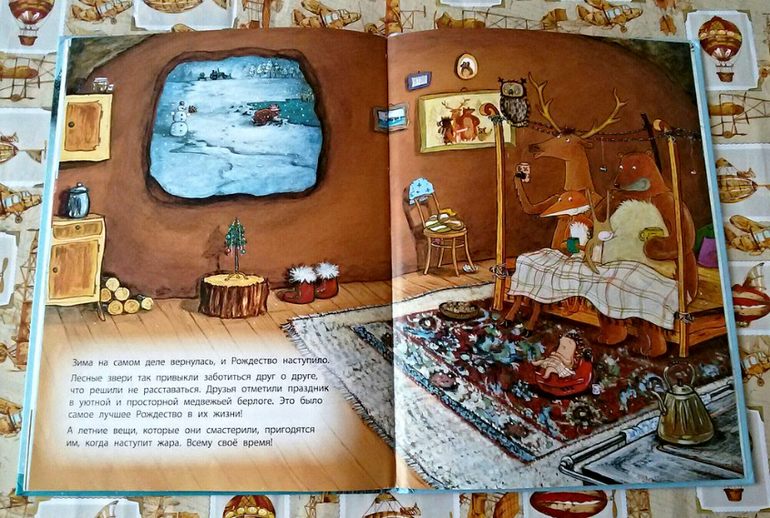 "Лесные звери так привыкли заботиться друг о друге, что решили не расставаться. Друзья отметили праздник в уютной и просторной медвежьей берлоге. Это было самое лучшее Рождество в их жизни!