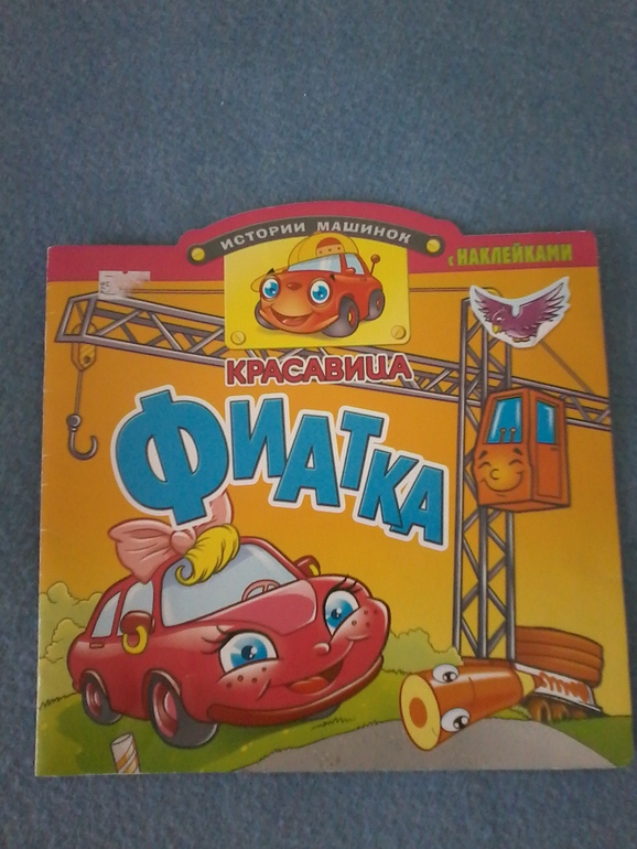 Красавица Фиатка. Тонкая книжка, да еще и с наклейками. Красочная небольшая история про машинку-девочку Фиатку.