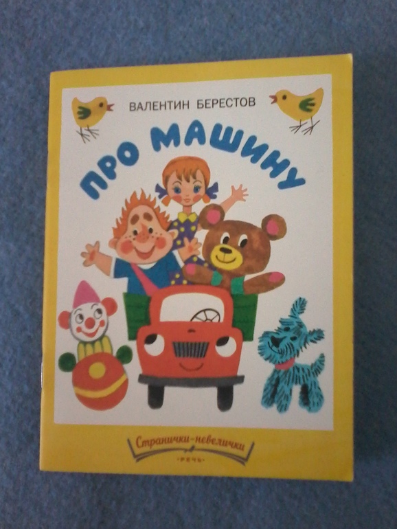 В. Берестов "Про машину". Книжка-малышка со стихом про машинку. Одно время просил перечитывать по несколько раз, даже наизусть потом начал рассказывать.