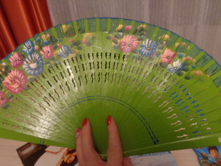 и супер-подарок для меня - веер!!! Моего любимого цвета - зеленого!!! Так и хочется надеть яркую красную юбку и постукивать каблучками в такт (я надеюсь) музыке!!!