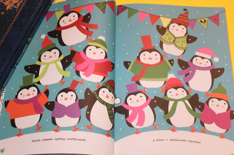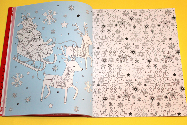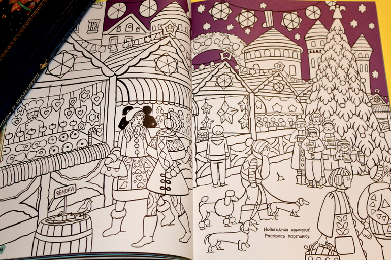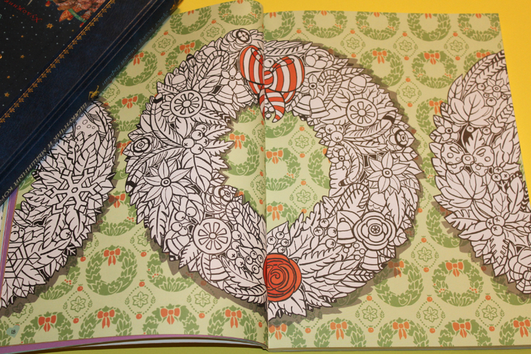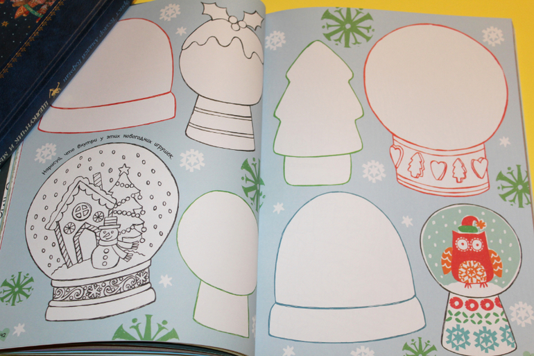 Раскрасок в книге тоже предостаточно. Все они на новогодне-рождесвенскую тематику, все красивые, праздничные, поднимающие настроение.