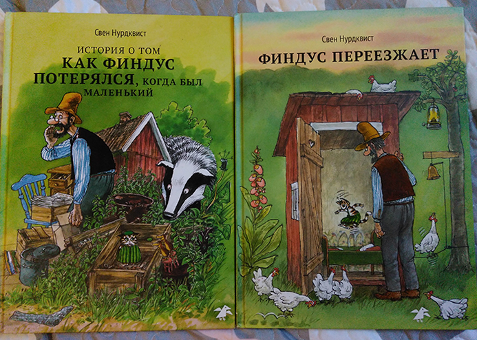 «Дрынь-хрясь, дрынь-хрясь, дрынь-хрясь, дрынь-хрясь» - дочка только так прыгает на кровати.. Немного переживаю, что серия не по возрасту, но моей доченьке уж очень нравится, так что пришлось на дальние полки не убирать. Удивительный уютный мир изобретателя Старика и проказника котенка. С не менее творческими мюклами. У нас пока только 2 книги «История о том, как Финдус потерялся, когда был маленький» и «Финдус переезжает». Дочку ждет еще одна книга про Рождество на НГ. Надеюсь что ей понравится.