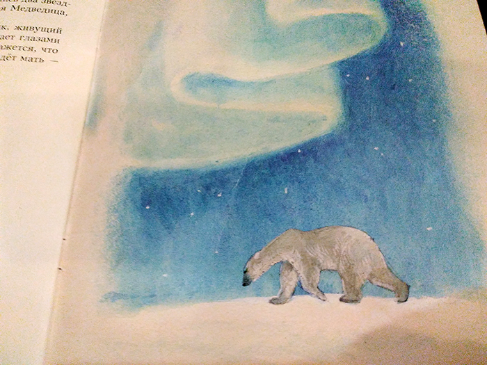 Мультик моя козявочка ещё не смотрела, но этот рассказ любит слушать - и когда ей читают скрепку от изд Речь, и слушает с удовольствием колыбельную из мультика, и также особо любит аудио с озвучкой Аиды Ведищевой (1969г.). Любимая история на ночь, сколько раз под нее засыпала. Часто обыгрывает - то увидит как плывет рыба-солнце, то ловит рыбу в полынье. Форель, щучку, семгу, все для своих детей, потом бежит домой варить уху. Но это если нос прикрыть лапой, чтоб нерпа не заметила. Все медведи или Умки, или мамы Умки )