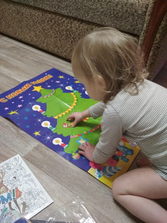 И ёлочку нарядили - очень классная игра с наклейками, Алёнка долго с ней возилась...