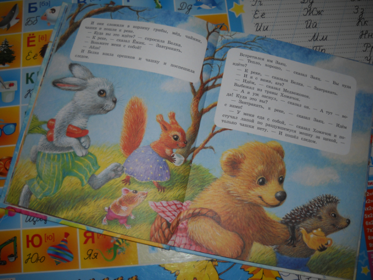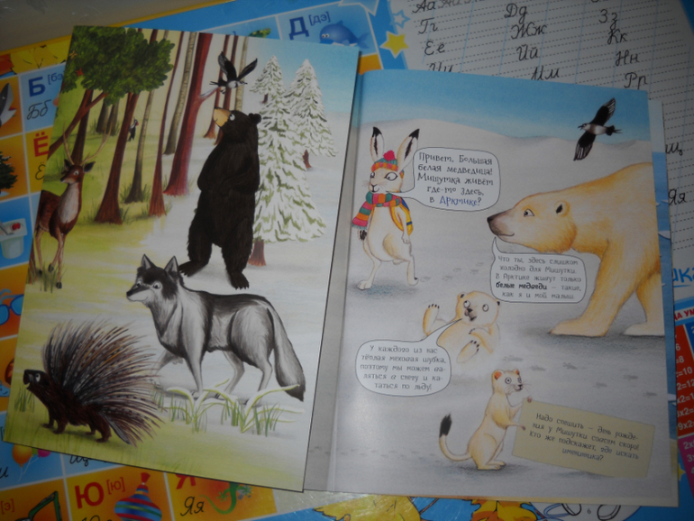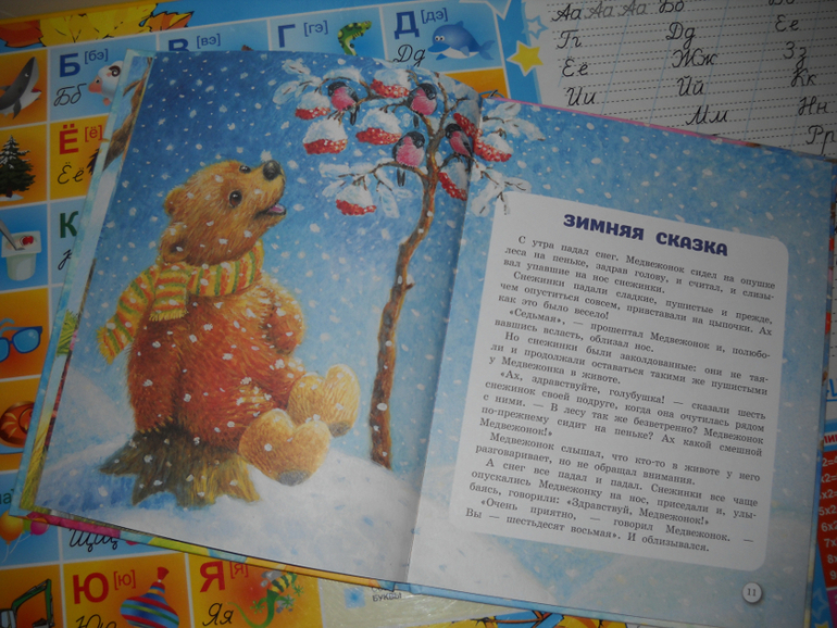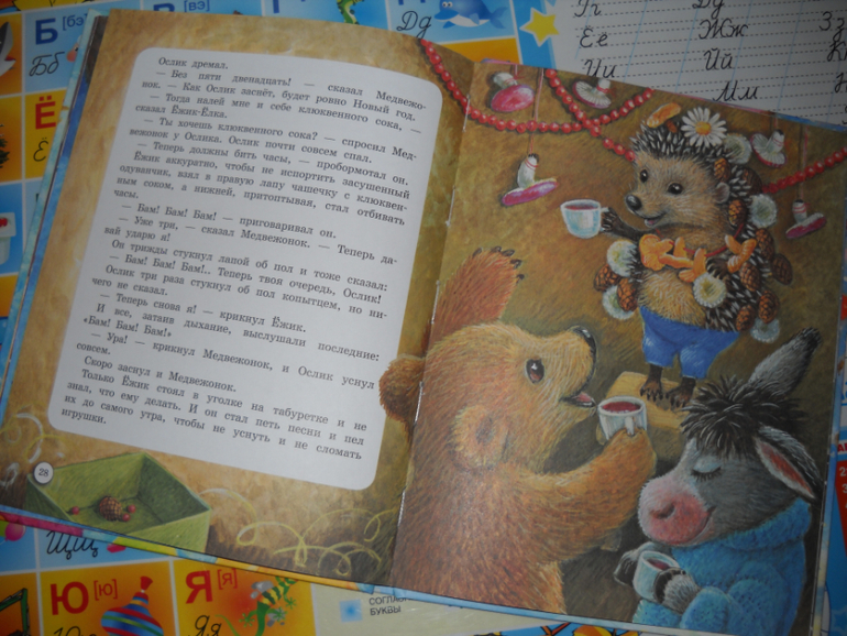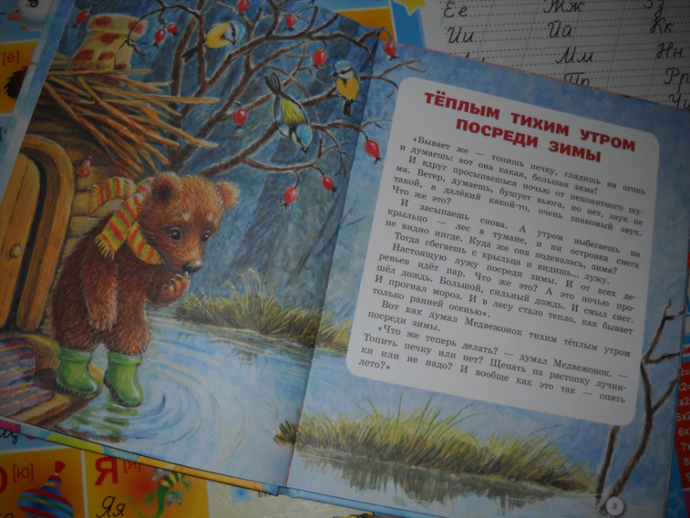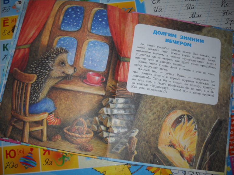 Все зимние книги на первой фотографии обожаемы сыном, у каждой своя изюминка. Раскладывающаяся елка, окошки, панорамка, музыкальный модуль. Книга от Умки покупалась вдогонку к любимому зимнему мультику сына, песенка в ней: Весь год трудился я не зря, пора в дорогу мне, последний лист календаря остался на стене! Дедморозовку купила, чтобы потом не разыскивать. Зима. Находилка-развивалка идет на возраст от двух лет, но все же думаю следующей зимой она более актуальной будет для сына. Ежик и медвежонок такие милахи!) Выборочно читаем.