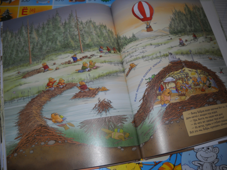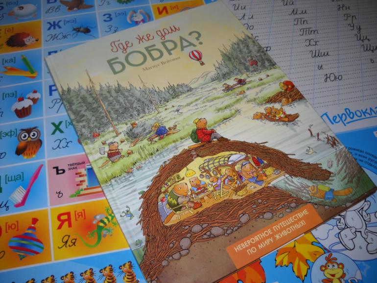 Где же дом бобра? от Росмэн очень понравилась мне, сыну еще не читала. Увлекательные, детальные иллюстрации, настоящий виммельбух, текст немного ниже уровнем, чем рисунки, понимаешь, что автор все же художник, а потом уже писатель, но впечатление от книги это не портит.