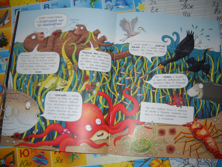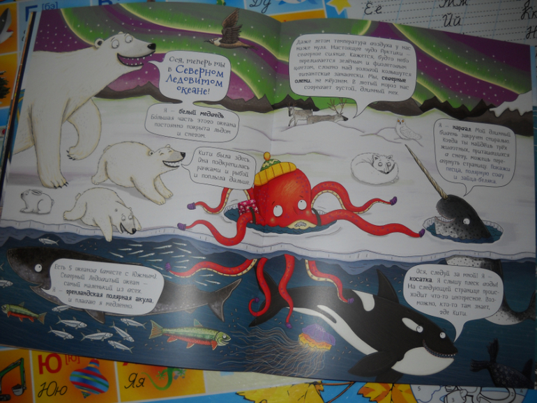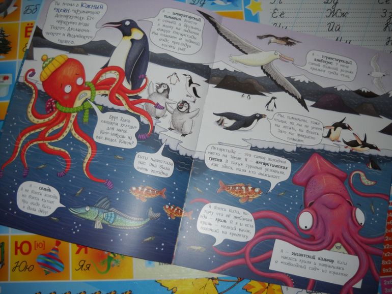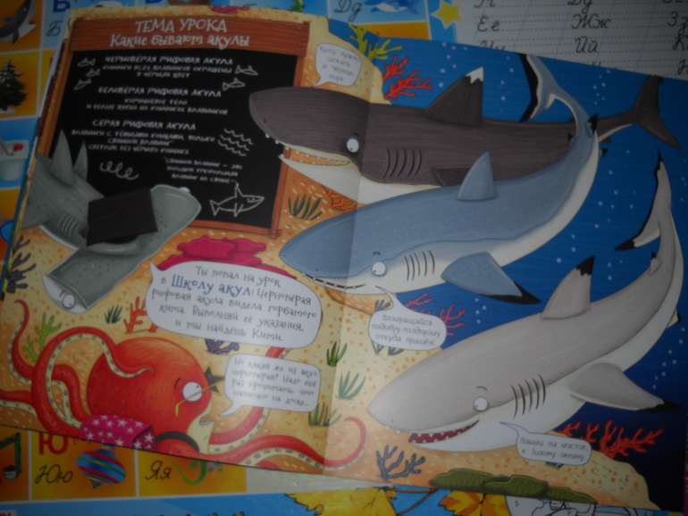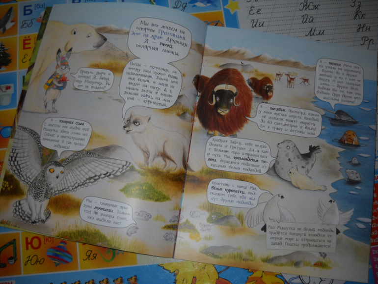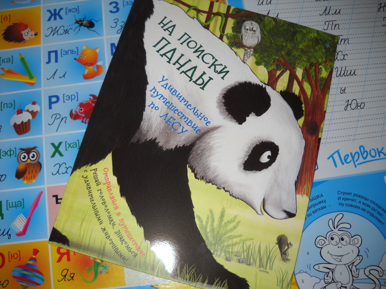 На поиски панды и На поиски кита от Росмэн. Познавательные и веселые, идея супер! Качество печати хорошее, одно но: склейка как в брошюрах, могут на листочки развалиться. Художники разные, мне больше нравятся иллюстрации в ките, но и в панде очень даже ничего. С сыном просто рассматриваем животных, задания идут на возраст старше, там и места обитания и признаки разных видов,и счет и можно побыть детективом, догадаться по подсказкам, кто вводит в заблуждение, кто говорит правду. Хорошие в общем.