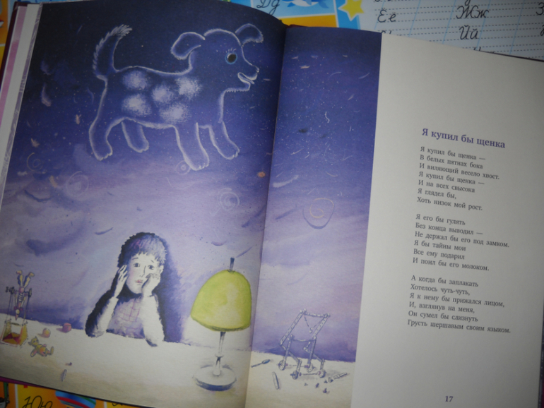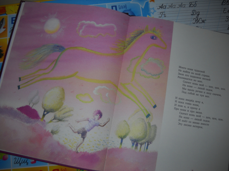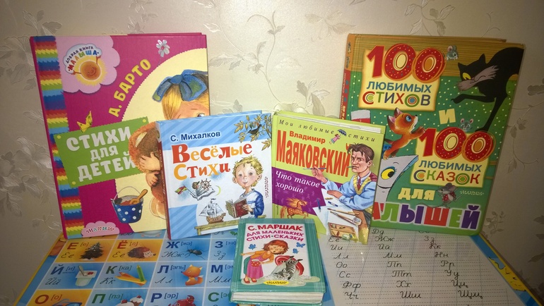Советская классика: Барто, Михалков, Маяковский, Маршак и другие. Маяковский и Маршак зачитаны до деформации корешков. Барто не пошла, пока или вообще еще не знаю. Михалков на вырост. 100 стихов, 100 сказок очень хороший сборник, о покупке не жалею и даже советую, много-много всего, удобная хрестоматия, есть и минусы свои конечно, но это же АСТ))