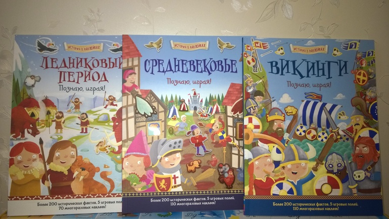 Книги с наклейками из серии История в наклейках от Хоббитеки. Взяла на вырост, очень уж понравилось качество и содержание. Хочется всю серию собрать...