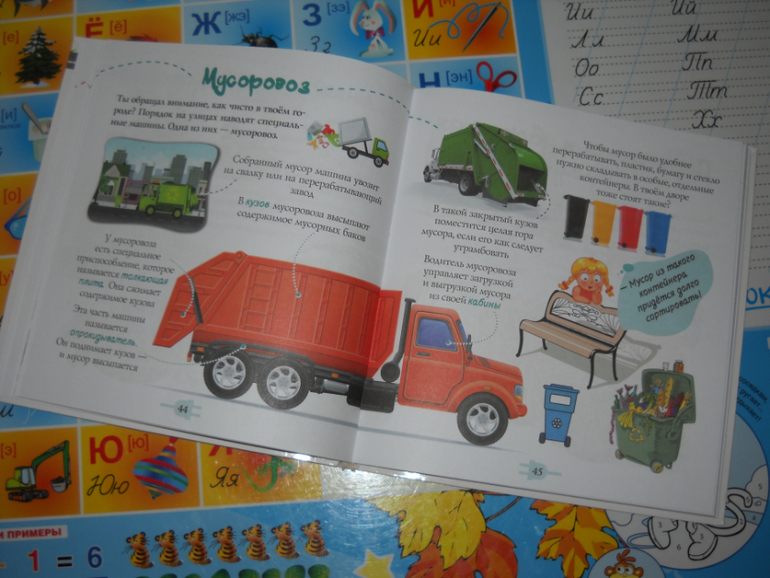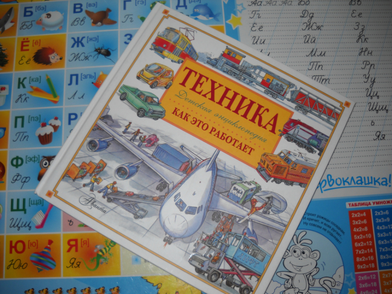 Книги про машины и технику. Ну с грузовиком с прицепом все понятно) Что делают машины порадовали качеством, плотный картон, проиллюстрированы приключения маленькой желтой машинки. Полезные машины -энциклопедия, сейчас уже можно читать, кратко, четко, доступно для малышей, радует, что там не только о транспорте, но и о бытовой технике много. Техника. Как это работает - энциклопедия на вырост, но картинки можно рассматривать уже. Сама над ней зависла: четыре раздела - автомобили, корабли, поезда и самолеты, интересно и не занудно, шикарные иллюстрации в разрезе, много деталей, мамы мальчиков - вам надо!))